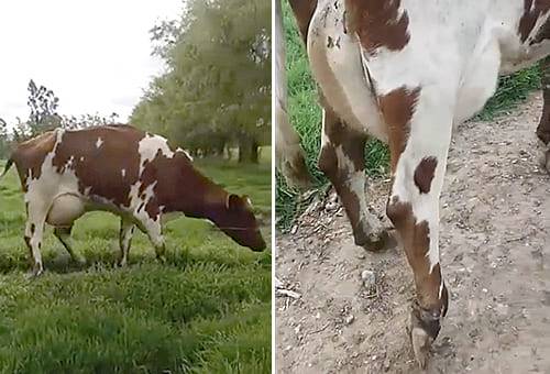 “Lo que normalmente nosotros podemos realizar es que si se hace una fuerza suficiente desde el lateral hacia el medial en la vaca sobre la rotula, se puede ubicar a su punto normal y así la vaca puede seguir caminando normalmente. Esto en una forma de confirmar el diagnóstico”, expone el profesional.