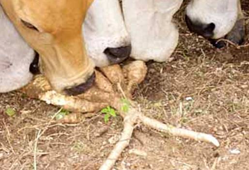 Las raíces y el follaje de la yuca son un recurso nutricional importante para la alimentación del animal en la ganadería de trópico. Por tener una eficiente producción por hectárea en comparación con los cereales, este tubérculo es considerado importante fuente de energía en la dieta bovina.