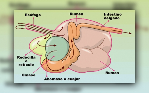 En la tercera y última entrega, se explicarán las funciones de la tercera y cuarta cavidad del estómago de los rumiantes (conocido como el tercer y cuarto estómago), en donde concluye el proceso de digestión en estos animales. Omaso Junto con el retículo y el rumen, el omaso es considerado uno de los 3 preestomágos, porque son las antecámaras al estómago glandular (el abomaso) y al intestino, donde ocurre la absorción de nutrientes. Este funciona como una bomba que impulsa el alimento desde el retículo al abomaso. El contenido pasa por el orificio retículomásico, que está abierto en la segunda fase de la contracción de mezclado. (Lea: El proceso de la rumia: Tránsito y absorción ruminal) Una vez hace el tránsito, el orificio se cierra, el canal del omaso se contrae y el contenido se distribuye entre los pliegos de esta cavidad. A continuación, ocurre una larga contracción del cuerpo del omaso que desplaza el contenido líquido hacia el abomaso. En el omaso, el tamaño de la partícula es similar a los 2 anteriores preestomágos y también se presentan procesos de fermentación. En sus pliegues se absorben los ácidos grasos, AGV, así como el agua. Abomaso También conocido como cuajar, la última de las cavidades actúa como el estómago de los demás animales, en donde las enzimas actúan para desdoblar proteínas y absorber los nutrientes. (Lea: El proceso de la rumia: Los movimientos ruminales) Pero a diferencia de los animales no rumiantes, el abomaso recibe un flujo continuo del contenido retículo ruminal. El abomaso secreta la proenzima pepsinógeno y ácido clorhídrico, sustancias que realizan la función de digestión proteica. Esta cavidad tiene 2 zonas funcionales: la región fúndica que produce gran cantidad de secreciones y tiene un pH cercano a 1, y la región pilórica, con un flujo más reducido y alcalino, con un pH de 3. El sistema endocrino regula la secreción abomasal. La distensión de la zona pilórica, el aumento del pH y de la concentración de AGV en el abomaso, provocan un aumento en la secreción de gastrina y de ácido clorhídrico. De otro lado, la motilidad del abomaso contribuye a mezclar su contenido, mientras que los movimientos peristálticos (que son los que determinan el tránsito de la comida) transportan el contenido hasta el duodeno. Todo el movimiento está regulado por el sistema nervioso entérico, el sistema nervioso vegetativo y el sistema endocrino. (Lea: Informe: Las fórmulas para calcular la cantidad de materia seca)