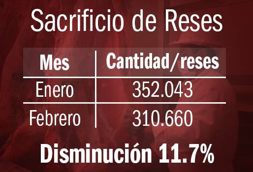 De acuerdo con los resultados de la investigación, en enero se sacrificaron 352 mil 043 reses, mientras que en febrero solo se inmolaron 310 mil 660 semovientes, lo que representa un decrecimiento de 11.7%. (Lea: Consumo interno de carne disminuye, pero exportaciones suben)