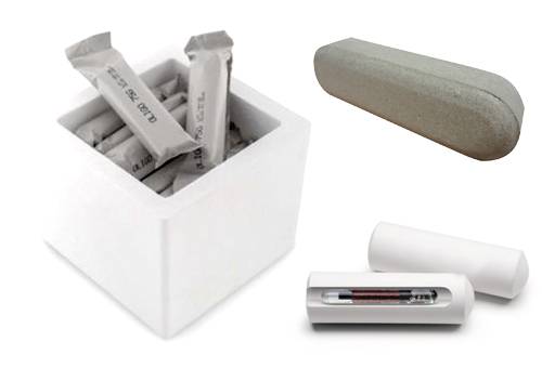 Otros bolos están construidos con láminas de plástico que separan tabletas del antihelmíntico. Las láminas se van gastando periódicamente y liberan una tras otra las tabletas que contienen. (Informe: La lista de los sistemas desarrollados para identificar el ganado)