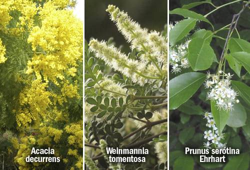 Las especies que pueden ser usadas son las acacias amarilla, japonesa y negra, capulí, cerote, ciprés, encino, eucalipto, guayacán, laurel del cera, moquillo, mote, motilón silvestre, nacedero de clima frío, nogal, pichuelo, pino patula, quillotocto, sauce llorón, sauco y urapán.