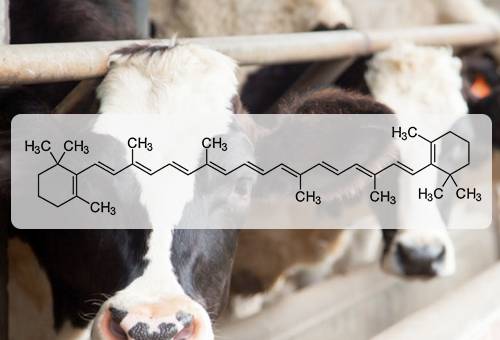 Cuando el ganado ingiere el forraje, es capaz de transformar el ß-caroteno en vitamina A en la mucosa intestinal. Existe una correlación de raza para la transportación de ß-caroteno del intestino a la sangre: animales de raza guernsey transfieren más carotenoides a la leche que los de la raza holstein.