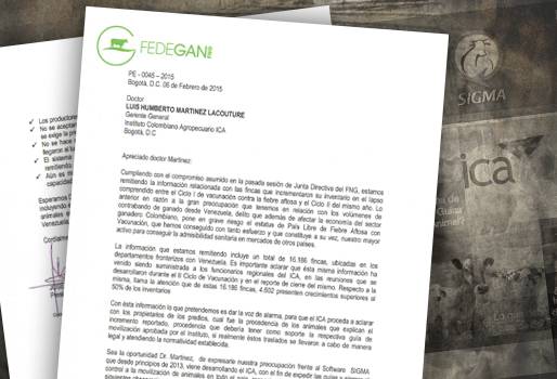 "Con esta información lo que pretendemos es dar la voz de alarma, para que el ICA proceda a aclarar con los propietarios de los predios, cual fue la procedencia de los animales que explican el incremento reportado, procedencia que debería tener como soporte la respectiva guía de movilización aprobada por el Instituto, si realmente estos traslados se llevaron a cabo de manera legal y atendiendo la normatividad establecida", señaló el dirigente en la misiva. (Lea la totalidad de la misiva)