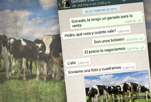 El sistema de mensajería instantánea con el que cuentan los teléfonos inteligentes, se ha convertido en un aliado de los productores, debido a que les permite estar en contacto con los empleados del predio e incluso por medio de ella se consolidan negocios.
