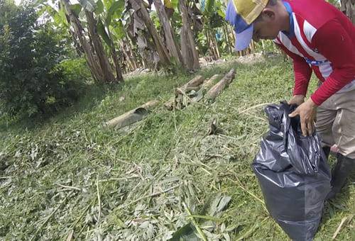 El matarratón se corta y se almacena en la bodega para posteriormente retirar las hojas del tallo.