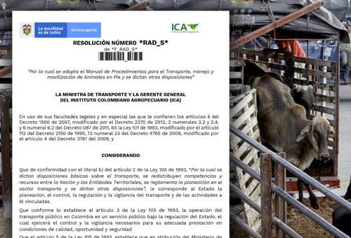 El Ministerio de Transporte y el Instituto Colombiano Agropecuario (ICA) tienen en consulta pública un proyecto de resolución sobre transporte, manejo y movilización de animales en pie.