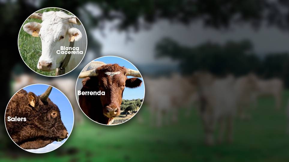 Se trata de las razas blanca cacereña, la berrenda, y la Salers, las dos primeras de origen español y la tercera de Francia.