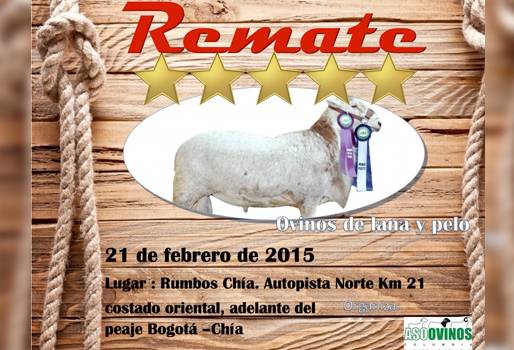 El próximo 21 de febrero en el municipio de Chía, Cundinamarca, se llevará a cabo el remate de ovinos de pelo y lana. Hasta el momento hay 80 animales inscritos. En la actividad también se subastará material genético de alta calidad.