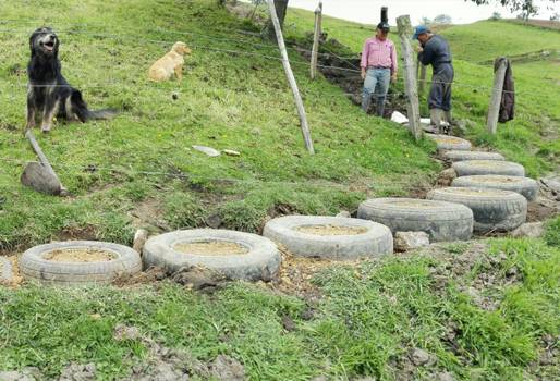 Así como en la empresa ganadera Tierra Buena, en la finca La Gonga, en la vereda San Isidro en Zipaquirá, el médico veterinario William González y su hijo Hugo elaboraron un camino para que puedan transitar los bovinos más estable y ecológico. De acuerdo con Hugo, a su padre se le ocurrió diseñar el camino después de mirar varias imágenes en Internet donde vio corrales, sillas y materas, entre otros objetos, elaborados a partir de neumáticos reciclados. Normalmente en época de lluvias el camino por el que transitaban las vacas se llenaba de agua y tenían que repararlo a cada rato. Por esa razón buscaron alternativas para darle una solución definitiva al problema. (Lea: Finca ganadera en Cundinamarca elabora cercas con llantas usadas) “El problema es que el recebo se hundía y tocaba estar rellenando frecuentemente, y aun así se encharcaba. Entonces mi papá dijo que podíamos utilizar las llantas para que el recebo se quede quieto y solamente rellenarlas para hacer el mantenimiento”, contó En primer lugar, dibujaron los planos en los cuales determinaron la disposición de las llantas y el recebo. Luego buscaron llantas viejas en sus predios y en chatarrerías cercanas, con la idea de aprovechar al máximo los neumáticos usados. Para construir el sendero, tuvieron que cavar hasta encontrar tierra firme o una superficie más sólida que la tierra para poner el recebo. A continuación sacaron tierra para hacer un hueco de la forma y tamaño de la llanta escogida. (Lea: En Antioquia las llantas son usadas para el manejo de zanjas) “La llanta se empotra y se llena de tierra o arena, rellenándola muy bien por dentro para que afirme en el piso. De la mitad de la llanta hacia arriba, se echa nuevamente recebo. Hay que dejarla bien llena por dentro, no tiene efecto porque se va vaciando”, aclaró. Con esto, se han ahorrado el trabajo de cavar zanjas para desocupar el agua que se empozaba en ciertos sectores o de aplicar recebo cada vez que se escapaba. En cuanto a las vacas, González confesó que al principio tuvieron dificultad para reconocer ese nuevo terreno. Al primer día, muchas dieron la primera pisada y prefirieron caminar por un lado. Por eso, con su padre decidieron encerrar el camino con el fin de obligarlas a pasar sobre él. “Al principio, las vacas miraron curiosas y pisaron por un lado. Pero después se sintieron cómodas y ahora pasan por ahí. Lo que sí debe hacer es ajustar el cable eléctrico para que crucen exactamente por ese tramo”, afirmó. (Lea: En Meta promueven la conciencia ambiental entre los ganaderos) González y su padre concluyeron la obra a finales del mes pasado y por el momento han tenido éxito con la estructura construida. Claro está que, como todo experimento de ensayo y error, tuvieron que corregir ciertos detalles sobre la marcha. “Obviamente hay que hacerle mantenimiento. Además una llanta se desplazó porque no quedó firme el piso debajo, pero el recebo no se salió, entonces solo tuvimos que acomodarla”, indicó. Para evitar un nuevo desplazamiento, compañeros les sugirieron a los González asegurar las llantas con tornillos unas con otras, de modo que el camino resista más. (Lea: Saladeros ecológicos, opción para ganaderos recursivos) Otro problema tuvo que ver con el tipo de llantas que debían usar, pues temían que los alambres de las llantas radiales pudieran hacerles daño a las patas de las vacas. Al final se decantaron por estas y las cortaron de tal forma que no sobresaliera ningún alambre. Además del beneficio ambiental y la ventaja económica que trae el uso de llantas usadas, tampoco se necesita mucha maquinaria para construir el sendero. Armadas con pala y azadón, González, su padre y el trabajador de la finca montaron el camino en corto tiempo. “Además de que ayudamos a eliminar un poco la contaminación, también nos ahorramos mucho recebo. Cuando se vaya a hacer el mantenimiento al camino, se le echa sobre la llanta, entonces se va la mitad o menos de lo que le echaba antes”, manifestó.