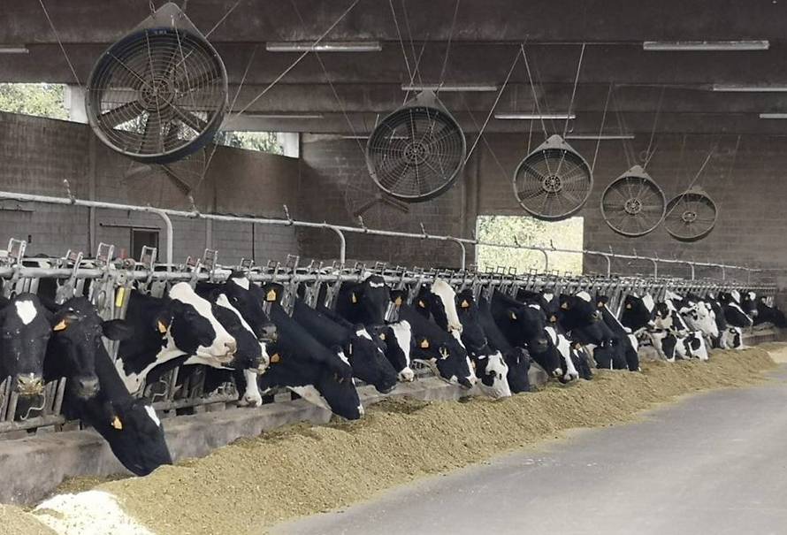 El grupo de enfriamiento diurno se enfrió con aspersores instalados en el techo que esparcen agua y ventiladores mientras el ganado se encuentra en la sala de ordeño, además de aire por conductos, sombra y ventiladores en el patio de alimentación, y un área de descanso con sombra.