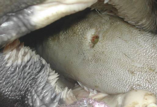 Se presenta una única lesión en la lengua, donde se observa úlceras de borde sangrante y con asiento central en la cara dorsal de la papila gustativa. La misma patología fue observada en otros países como Bolivia, donde generó una sospecha de fiebre aftosa.