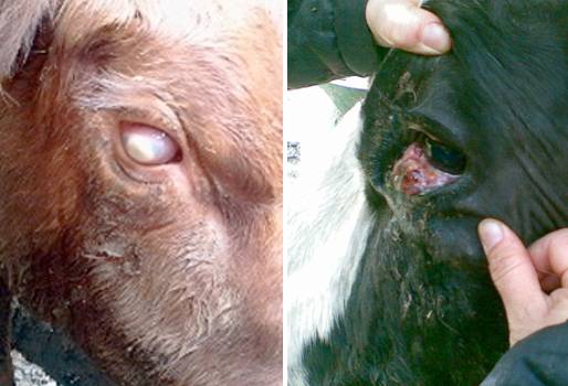 Aunque todos los problemas oculares deben informarse a un veterinario, es importante que el propietario del ganado identifique y reconozca las dolencias oculares comunes. Algunas de las enfermedades más comunes son: Laceraciones en la córnea La córnea es la capa externa y transparente del ojo, que lo protege y a la vez permite el paso de la luz. Cuando hay problemas en esta parte del ojo, se presenta nubosidad o hinchazón que puede provocar pérdida de la visión. La irritación también produce un dolor agudo. Una lesión puede causar una abrasión superficial o penetrante dependiendo de la profundidad de la herida. El alambre de púas, la astilla de un poste o una rama pueden ser factores de riesgo y causar laceraciones en los bovinos. El ganadero se dará cuenta de este problema si el animal conserva los párpados cerrados y se resiste al examen, o si observa inflamación del ojo. Mientras que las heridas leves se pueden tratar con antibióticos y atropina, las más profundas deberán repararse con cirugía. Queratoconjuntivitis infecciosa bovina También conocida como enfermedad de los ojos rojos, ojo rosado o queratitis epizoótica, esta enfermedad aparece ante los cambios bruscos de clima, por ejemplo cuando se pasa deuna sequía intensa a algunas lluvias ocasionales. También se pueden presentar debido a otros factores como la pigmentación, el estado sanitario del hato, sistemas inmunológicos poco competentes, veranos muy prolongados que causan disminución de la vitamina A y radiación solar. (Lea: Échele un ojo a la queratoconjuntivitis infecciosa bovina) “Además puede haber irritantes como semillas, tallos altos, polvo o polen, que pueden causar la infección y comprometer la visión parcial o total del bovino. También hay componentes raciales del bos taurus, que corren más riesgos a tener brotes agudos de la queratoconjuntivitis”, explicó Regino. Por su parte, Joaquín Gómez Celis, médico veterinario y zootecnista de la Universidad de Antioquia, señaló que esta enfermedad es producida por una bacteria llamada Moraxella bovis y es producida por el contacto que tienen los animales entre sí. “Por ser bacteria es sensible a los antibióticos. Por tal motivo, el mejor tratamiento es utilizar aerosoles con diversos compuestos de acción antibiótica y antiinflamatoria, así como pomadas o ungüentos”, aclaró Gómez Celis. Un tratamiento preventivo de esta enfermedad es el suministro de proteínas, minerales y vitaminas (sobre todo vitamina A), que se dan en los pastos y suplementos. Si no hay alimentos ricos en nutrientes, se deben aplicar de forma masiva con suplementos para evitar las enfermedades. Otras enfermedades infecciosas La rinotraqueítis infecciosa bovina, IBR, es una afección que puede causar problemas en los ojos, causando conjuntivitis. Al comienzo pueden ocasionar un lagrimeo excesivo e incluso una secreción que se asemeja a una infección. (Entrevista: Efectos del virus IBR y su situación en la ganadería colombiana) Otra enfermedad que puede afectar los ojos es la diarrea viral bovina, BVD, un mal reproductivo que aparece en la gestación y puede provocar problemas en los ojos de los terneros al momento de nacer como cataratas. Ambas infecciones se pueden evitar con vacunación oportuna. Cáncer El cáncer más común relacionado con problemas del ojo es el carcinoma ocular de células escamosas o carcinoma ocular bovino. En un principio, la mayoría de las áreas del carcinoma parecen lesiones pequeñas, bultos blancos o verrugas que pueden devenir en tumores malignos. Estos tumores se dan de cualquier tamaño y con frecuencia invaden la estructura del ojo y los tejidos y huesos aledaños. Si se les deja avanzar lo suficiente, los tumores se propagan a otras regiones del cuerpo. (Lea: Los padecimientos en las pestañas de bovinos) Hay ganados más susceptibles que otros a este tipo de cáncer. Aquellos con cara blanca y pigmentación del mismo color alrededor de los ojos son más vulnerables. Cuando se presenta el cáncer, el tratamiento más común es la extirpación del ojo y los demás tejidos, pero con frecuencia se hace necesario sacrificar al animal. El otro cáncer es el linfosarcoma o linfoma maligno. Generalmente, cuando se presenta en el ojo quiere decir que ya hay lesiones en otras partes del cuerpo, por lo que el bovino deberá ser sacrificado de inmediato. Cuando un ojo resulta afectado, el signo más común es que el globo ocular es empujado hacia afuera de su cavidad. En cualquiera de los casos expuestos, no dude consultar con un médico veterinario sobre la mejor forma de tratar la afección de su ganado. Fuente: http://www.infovets.com/books/spanish_dairy/F/F220.htm