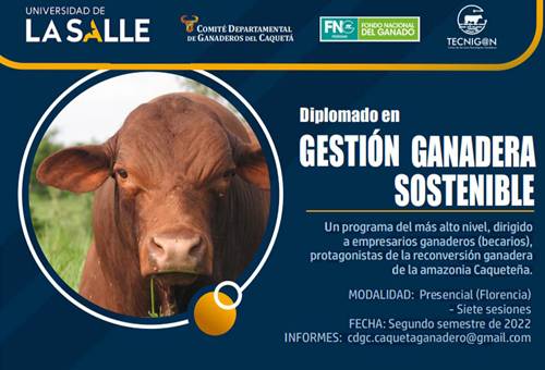A partir del próximo 29 de julio y hasta el 14 de octubre se llevará a cabo un diplomado en gestión ganadera sostenible organizado por el Comité departamental de ganaderos del Caquetá, Fedegán-FNG, Tecnig@n Caquetá y la Universidad de La Salle.
