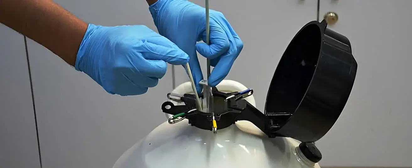 “El termo jamás se debe quedar sin nitrógeno líquido. Semanalmente debemos estar revisando el nivel de nitrógeno, y el mínimo para que el tanque funcione de una manera correcta es de un 20%”, describe Sánchez Flores.