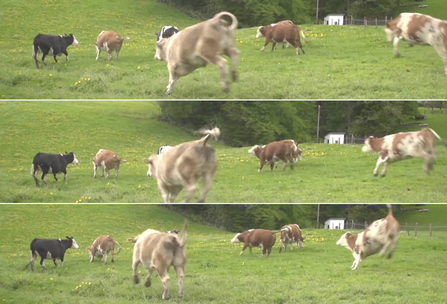 Algunos especulan que las vacas corren, saltan y rebotan cuando están emocionadas o felices. Esto se puede ver en videos de vacas que salen a pastar con un comportamiento tan animado que parece que están saltando de alegría. Cuando los videos se viralizan, los internautas argumentan que brincan porque han sido liberadas.