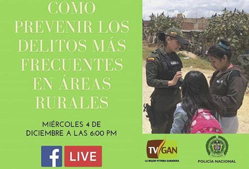 La Federación Colombiana de Ganaderos (Fedegán) y TVGAN Colombia invitan al siguiente Facebook Live dedicado a capacitar a los interesados sobre cómo prevenir los delitos que afectan a los productores en zona rural, que se hará el miércoles 4 de diciembre a las 6 pm.
