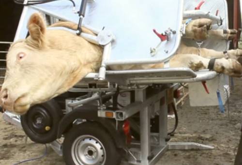 Según la empresa Northern Engineering Ltd de Irlanda del norte, el «cow tipper» ha sido desarrollado para reducir el estrés tanto del animal como del operador. Existen varios modelos pero todos consisten básicamente en un brete para asegurar al animal y levantarlo.