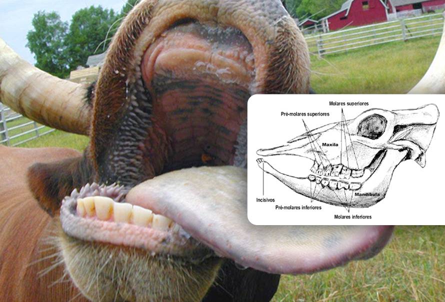 Esto lo convierte en un mecanismo de trituración muy efectivo. Debido a esto, las vacas no tienen dientes frontales, al menos en la parte superior. No obstante, aunque las vacas carecen de incisivos en la mandíbula superior, sí tienen premolares y molares superiores. (Lea: Higiene oral de los bovinos, fundamental para una correcta alimentación)