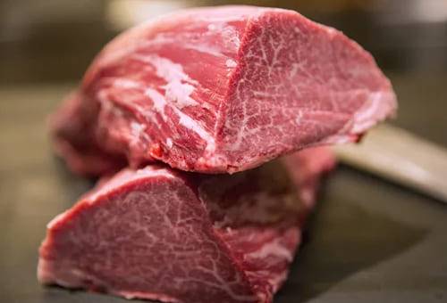 El músculo magro tiene una alta frecuencia de motas de grasa delgadas y distribuidas uniformemente. Estas finas motas se derriten durante la cocción, agregando jugosidad y ternura a toda la carne. En el mundo de la restauración, los tipos más deseables, como la carne de res Kobe, tienen una alta frecuencia y una distribución uniforme del veteado fino.