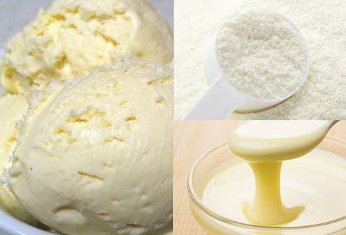 Las fábricas que elaboran helados obtienen estos compuestos al adicionar leche en polvo (LP) entera y descremada, leche condensada, caseinatos, entre otros. En algunos casos, se están empleando sustituyentes compensar la falta de estos productos o reducir costos.