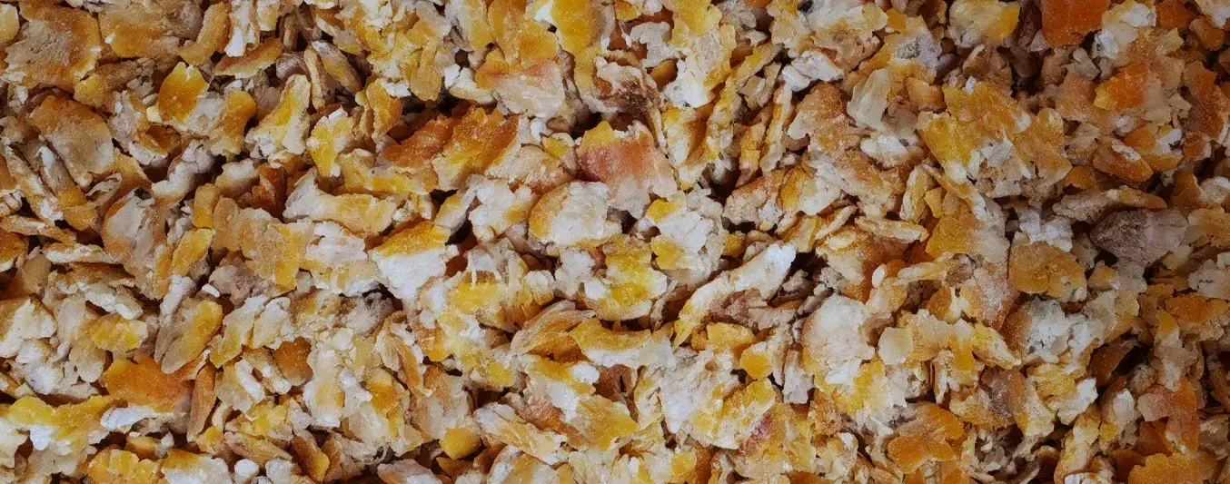 El secreto del maíz rolado está en el proceso de cocción con vapor y prensado que rompe una película externa que naturalmente envuelve al grano. Esta capa representa una barrera para las enzimas y bacterias del rumen, dificultando el acceso al almidón, que es la principal fuente de energía para el ganado.