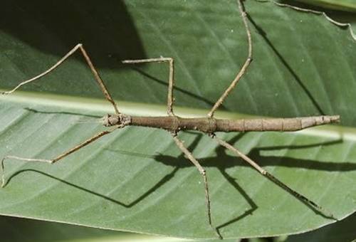 La hembra mide 12 cm de longitud y es más grande que el macho que sólo alcanza los 9 cm. El ciclo de vida de este insecto incluye tres etapas: huevo, ninfa y adulto.