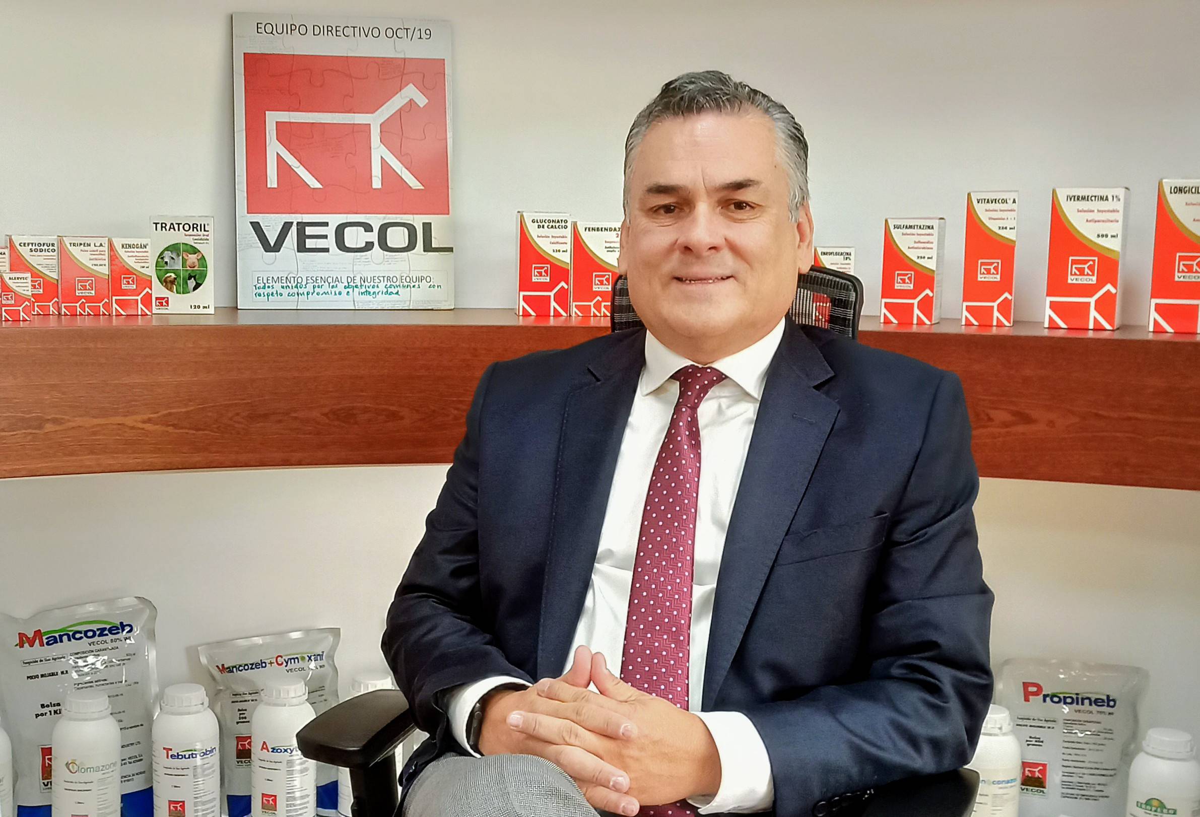 El presidente de Vecol explicó que durante 2020 trabajaron en un esquema de unidades de negocio, las cuales fueron definidas como aftosa, animales de producción, animales de compañía y agrícola. De esa manera pudieron atender con foco a todas las fuerzas de ventas para que cada una saque adelante lo que le corresponde y ser mucho más específicos en el trabajo en cada una de estas áreas.