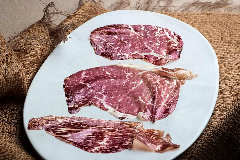 El recorrido concluye con las piezas más exclusivas como tartares, cecinas de larga duración y chuletas procedentes de los animales más excepcionales.