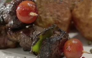 Montamos nuestros pinchos en los palos intercalando los ingredientes al gusto finalizando con el tomate cherry, en una sarten caliente agregamos aceite y empezamos a sellar nuestros pinchos hasta que queden bien dorados por cada lado, al emplatar, colocamos las brochetas en un plato acompañado de unas papas criollas fritas. Que lo disfruten!!!.