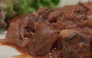 En un sarten caliente con aceite de oliva sellamos nuestra carne cortada en cubos previamente, dejamos que se doren y agregamos la cebolla, champiñones, la pasta de tomate y dejamos cocinar por unos minutos. Ahora agregamos los tomates picados y nuestro fondo o caldo de res y dejamos que se reduzca por 1 hora y nos alistamos para emplatar. Que lo disfruten