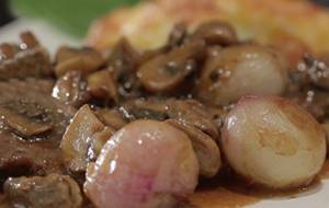 En un sarten con poco aceite colocamos nuestro filete con sal y pimienta al gusto, dejamos que dore un poco y mientras tanto agregamos la cebolla, los champiñones y salpimentamos, agregamos un poco de mantequilla, salsa inglesa y un poco de fondo, dejamos cocinar por 20 minutos y emplatamos. Disfrutenlo.