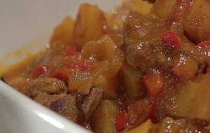Preparación En una sarten caliente agregamos aceite y procedemos a sellar nuestra carne previamente cortada en cubitos, agregamos pimienta al gusto y esperamos que se doren. Retiramos la carne de la sarten agregamos mantequilla para sofreir la cebolla, el pimenton, el pure de tomate y la carne nuevamente. Agregamos papicra al gusto, papas previamente cortadas en cuadritos agregamos una ramita de romero y por ultimo fondo o caldo. Dejamos en la sarten por 40 min y nos preparamos a emplatar. Que lo disfruten.