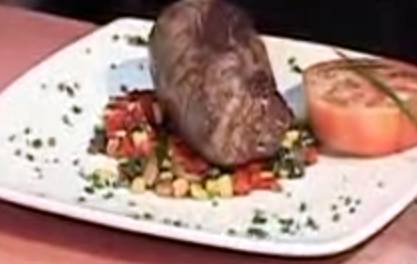 Condimentar el lomo con pimienta, tomillo, laurel, empapar el lienzo en la marinada de aceite de oliva y colocar una capa gruesa de sal de piedra en este, colocar el lomo condimentado sin partir, envolver el lomo con el lienzo, llevarlo a la brasa por cuarenta minutos, rebanar y servir.
