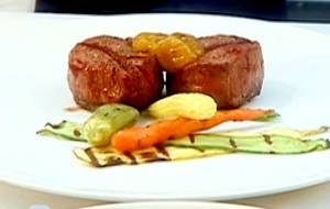 Realizamos 2 cortes de lomo, les agregamos pimienta al gusto y los llevamos a la parrilla para sellarlos, cortamos los calabacines en julianas para tambien llevarlos a la parrilla agregandole aceite de oliva, por unos segundos para generar una textura y sabor. Preparamos en un recipiente la mermelada de Cacao blanco agregando y mezcandola con mostaza al gusto. Ya sellado el lomo, emplatamos, colocando las verduras en el plato con su sabrosa textura de parrila, colocamos los 2 trozos de lomo y le agregamos la mermelada de Cacao Blanco con mostaza y lo acompañamos con un buen vino. Disfrutenlo.