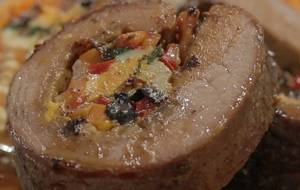 Se remoja la Malaya en leche durante 1 hora, procedemos a montarla de la siguiente manera: colocamos el pimenton, luego la espinaca, huevos cocinados, cebolla cabezona cortada en julianas, una cucharada de mostaza, sal al gusto, perejil y enrollamos atando 3 cordones al rollo uno en la mitad y los otros en los extremos, Le damos sabor mojandola con nuestro fondo o caldo de res y lo metemos a un horno precalentado a 160 grados. Lo dejamos 30 min en el horno y empesamos a emplatar. Buen provecho