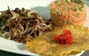 Vaca Frita es un plato típico de Cuba. Colocamos el arroz en un sarten con aceite y mantequilla, se agrega pasta de tomate al gusto y la arveja previamente cocida, en otro sarten con aceite se coloca la carne desmechada hasta que tenga una textura crocante y en otro sarten colocamos la cebolla en julianas en mantequilla y le agregamos la copa de brandy y el jugo de naranja, pasamos la carne al sarten donde estamos fritando la cebolla y mezclamos. Fritamos un patacón, para hacer el acompañamiento. A continuación emplatamos y buen provecho!!!.