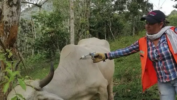 “Durante los 14 años que llevo como vacunadora en los ciclos contra la fiebre aftosa realizados por Fedegán-FNG, siempre he tenido que lidiar con los riesgos de cruzar los ríos en alto estado de caudal o de creciente corriente; también por el peligro de ser atacada por serpientes y animales salvajes y, asimismo, cuando en el corral de las fincas se sale o se suelta algún animal pues he estado a punto que me golpee o me cornee”.