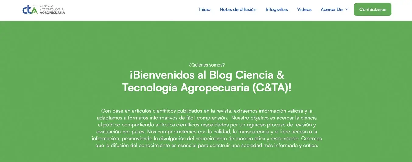 Como se menciona en el Blog Ciencia & Tecnología Agropecuaria, su convicción es clara: la ciencia es fundamental para entender el entorno y enfrentar los desafíos globales. Cada uno de los artículos busca ser una fuente de inspiración y aprendizaje.