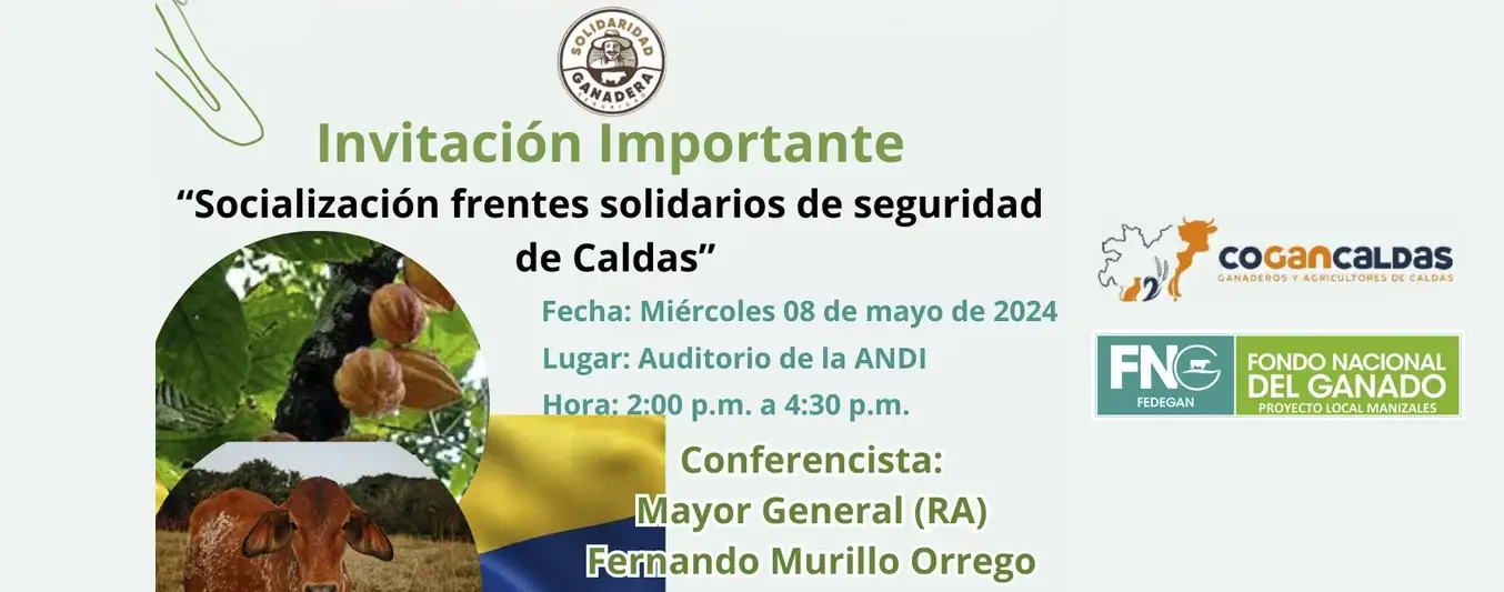 El próximo miércoles 8 de mayo, en el emblemático auditorio de la Asociación Nacional de Empresarios de Colombia (ANDI) en Manizales, se llevará a cabo un importante evento dedicado a la socialización de los Frentes Solidarios de Seguridad y Paz Ganadera. Este encuentro, programado de 2:00 pm a 4:30 pm, es una iniciativa crucial en la estrategia de seguridad liderada por el Mayor General Fernando Murillo Orrego, que está siendo implementada por la Federación Colombiana de Ganaderos, Fedegán.