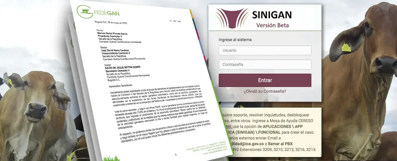 Lafaurie Rivera aseguró que “en el último año y medio son reiterados los casos de caída del sistema SIGMA/Sinigán, así como la pasarela de pagos y la conectividad, afectando sensiblemente la movilización de bovinos y bufalinos con destino a predio, feria o planta, deteriorando la dinámica económica de las regiones ganaderas del país”.
