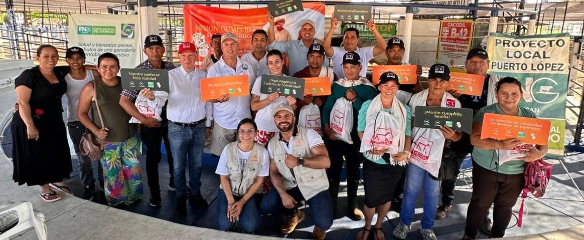 En un acto que simboliza la esperanza y la solidaridad, la Fundación Colombia Ganadera (Fundagán) y la Empresa Colombiana de Productos Veterinarios (Vecol S. A.) unieron esfuerzos para realizar la entrega de siete vacas preñadas a igual número de familias en el municipio de Puerto López, Meta, como parte del programa «Una Vaca por la Paz».
