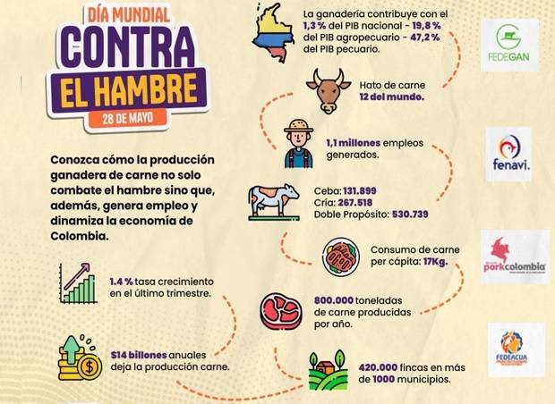 Una alianza para generar conciencia en la población colombiana sobre la importancia en la dieta alimentaria de la ingesta de la carne, se llevó a cabo entre los principales gremios de la producción para incentivar su consumo con motivo del Día Mundial del Hambre el 28 de mayo de 2023.