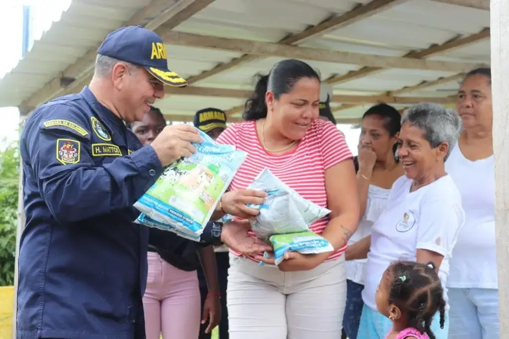 La entrega de la ayuda humanitaria contó con la colaboración del contralmirante Hernando Enrique Mattos Dager, comandante de la Fuerza Naval del Caribe, y el contralmirante Camilo Mauricio Gutiérrez, junto con la Acción Social Naval del Caribe, presidida por la señora Margarita Duarte de Mattos, esposa del almirante Mattos, quienes también estuvieron presentes. Además, el líder ganadero de Providencia, Cleveland Amador Hawkins, fue parte fundamental de esta noble jornada.