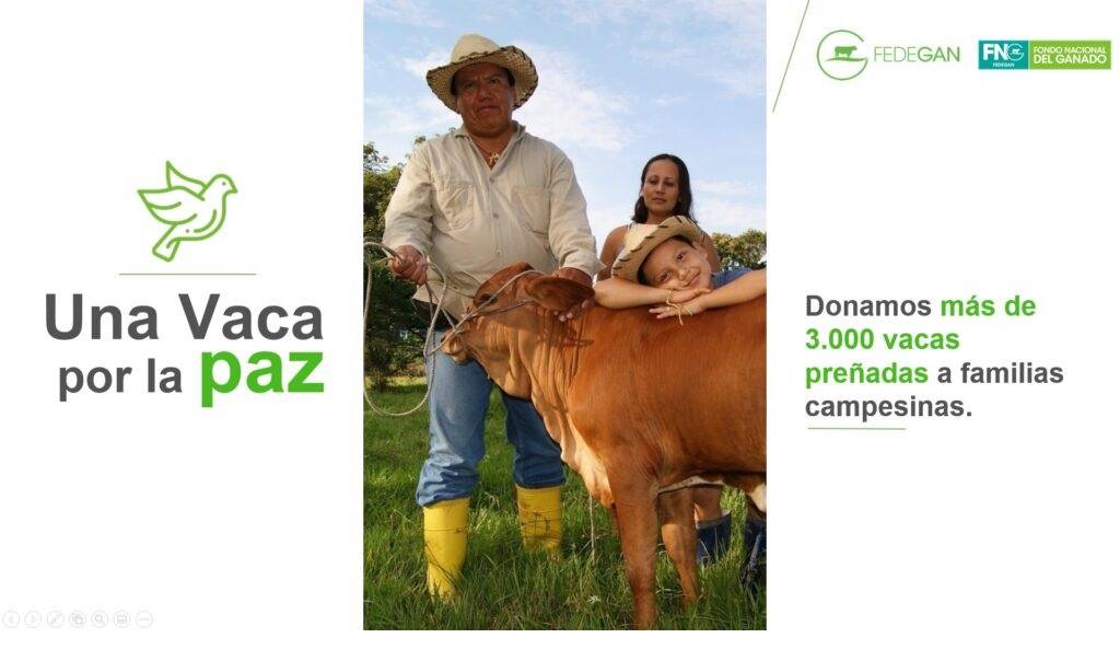 “Una Vaca por la Paz, que nació en 2010 es un programa emblemático de Fundagán que expresa, de manera especial, el principio de solidaridad del gremio ganadero hacia los pequeños productores y poblaciones campesinas pobres”, manifestó Nataly Delgado, directora ejecutiva de Fundagán.