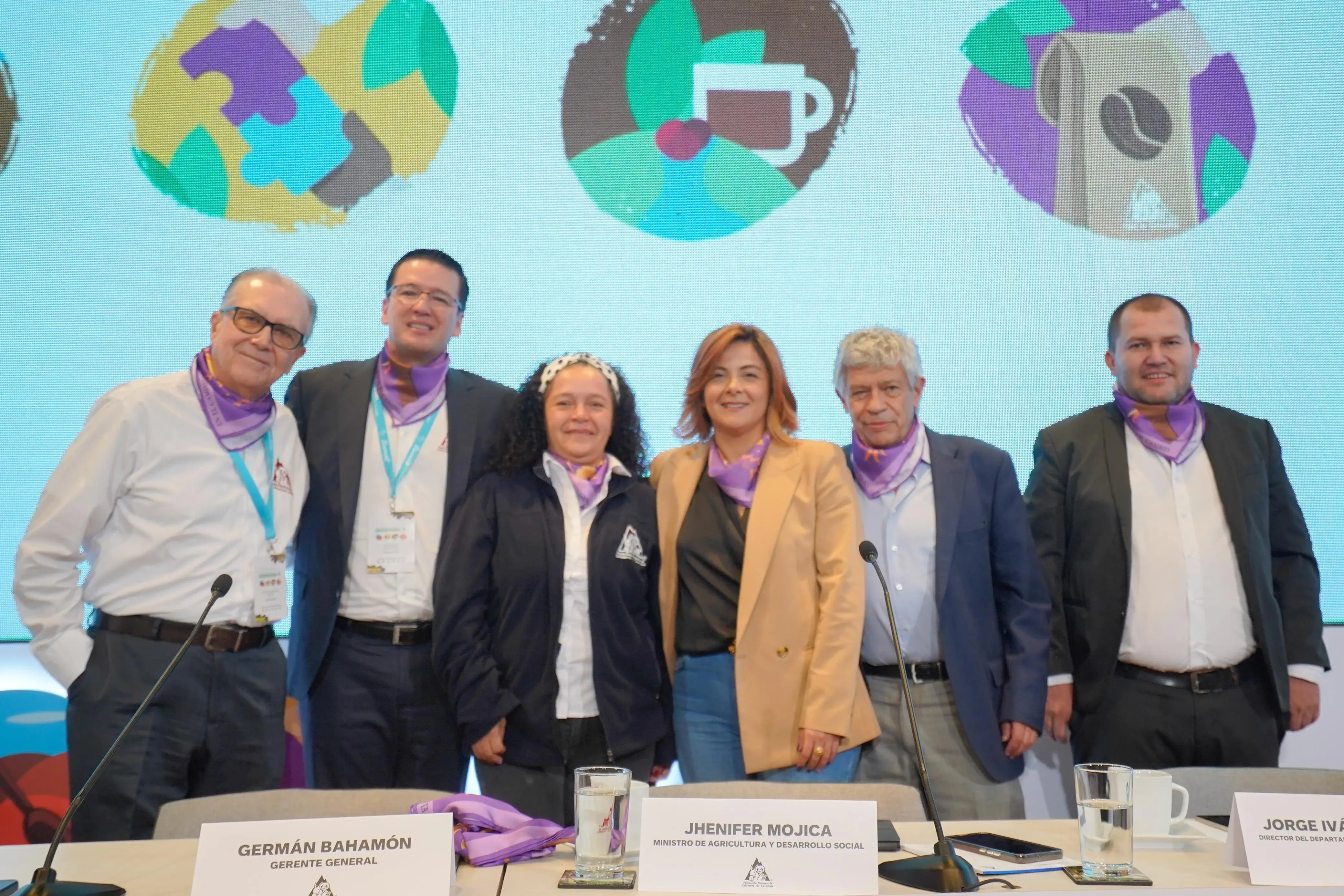 Incluso, hubo un hecho muy singular y fue la entrega de una pañoleta morada al gerente de la Federación y al presidente del Congreso cafetero, por parte de la ministra Mojica y que es un símbolo de solidaridad femenina. Para el gerente esto representa un compromiso para que en todas las juntas directivas del gremio siempre haya una mujer que represente a las caficultoras.