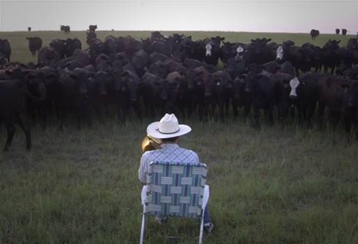 El agricultor interpreta la canción Royals de Lorde sentado en medio de campo abierto. Al minuto se ve en el horizonte el grupo de reses que se moviliza hacia él. Pasados 2 minutos los ejemplares están junto a Derek como hipnotizados con la melodía musical.