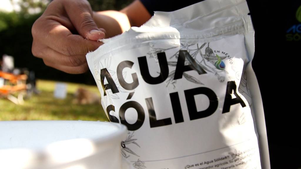 Amílkar Mendizábal, director de Mercadotecnia y Operaciones de Agua Sólida, sugiere una comparación para explicar qué es el agua sólida: imagínate una pequeña cantimplora o vaso o botella que se llena poco a poco con el agua de lluvia o riego, reserva el agua de 30 a 45 días como máximo y la libera lentamente para lograr que haya una "humedad estable" en el suelo. "Conforme la planta lo vaya necesitando, agua sólida va a ir liberando esta humedad" y manteniéndola donde se necesita: en la zona de las raíces.