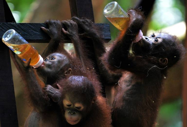 Ajena a los gritos de sus compañeros de clase, una cría orangután se columpia cambiando de mano, con los pies en alto. En este refugio de la jungla de borneo, los monos reaprenden a vivir en su hábitat natural. Otan, un orangután de 3 años, aprende a arreglárselas solo desde que lo encontraron, errante y en muy mal estado, en una plantación de palma aceitera. Había inhalado humo procedente de los incendios gigantescos que el año pasado arrasaron extensas zonas de bosque tropical en Kalimantan, provincia indonesia de la isla de Borneo. En el refugio internacional para animales, RIA, Otan y otros orangutanes huérfanos aprenden a hacer nidos, a buscar comida y a evitar a los predadores. Deben prepararse para regresar a una jungla donde estos grandes monos de Asia están más amenazados que nunca. (Lea: El orangután de Borneo está al borde de la extinción) Estos monos de pelaje pelirrojo podrían desaparecer completamente de Borneo en los próximos 50 años, debido a la deforestación y a los incendios que asuelan el bosque tropical, advierten los expertos. En julio, la Unión internacional para la conservación de la naturaleza (UICN) declaró a los orangutanes en peligro crítico, o sea la última etapa antes de la extinción de una especie en estado salvaje. Todavía hay algo más de 100 mil en Borneo. En 1970 eran casi 300 mil, según la UICN. Situación desesperada "Se te parte el corazón", dice Ayu Budi, director de la clínica veterinaria del refugio de la oenegé RIA, equipada de cierres adaptados a las crías y a los ejemplares adultos. "Cuando los miras, es muy triste. Deberían estar con su madre en la naturaleza y vivir felices, pero están aquí". Budi y sus compañeros les enseñan a encontrar alimento escondiendo cacahuetes y miel en pelotas de plástico en lo alto de los árboles. Uno de los monos se llama Jack y es muy travieso. De los 101 orangutanes atendidos por Budi, 16 son pequeños. Todos ellos escaparon por poco a la muerte y se alimentaron a base de biberón en una parcela del refugio, cerca de la ciudad de Ketapang. No todos han tenido su suerte. Miles murieron en los últimos 40 años en Borneo, a manos de cazadores, quemados por incendios forestales o de hambre debido a que su hábitat se encoge. "La gente que trabaja en Borneo lo sabe desde hace tiempo: la situación de los orangutanes es bastante desesperada", confiesa Chris Wiggs, un consejero del refugio. (Lea: Un orangután exhibe sus capacidades musicales en zoo australiano) El número de monos en el refugio se ha multiplicado desde 2009, a medida que estos animales perdían territorio por las plantaciones de palma, de celulosa y de caucho. A esto hay que añadir los incendios anuales en la parte indonesia de la isla de Borneo (dividida entre Indonesia, Malasia y Brunéi). Corregir errores A menudo pierden el control de las llamas. Así ardieron alrededor de 2,6 millones de hectáreas de bosque tropical el año pasado, uno de los peores de la historia. Los campesinos y las compañías agrícolas prenden fuego intencionadamente a parcelas para desbrozarlas rápidamente y cultivar más palma aceitera, pese a la prohibición de este tipo de práctica. El centro de cuarentena del refugio estaba sobrepoblado de orangutanes desesperados como Vijay y Moli, dos jóvenes encontrados cerca de terrenos calcinados. El Gobierno promete cada año medidas de lucha contra la plaga de los incendios, cuyo humo tóxico se propaga hacia países vecinos como Malasia y Singapur. Pero no se constatan resultados. (Lea: Rápida explotación de recursos naturales amenaza a grandes simios) "Nos da a todos bastante miedo de que se repita de nuevo, y nos preguntamos si las especies podrán soportar un golpe como este", afirma Wiggs, refiriéndose al año pasado. "Tenemos que corregir los errores del pasado", explica la directora de la agencia pública de protección de los animales en el oeste de Kalimantan, Sustyo Iriono, insistiendo en la necesidad para Indonesia de ocuparse de las turberas (terrenos con material combustible que alimentan el fuego). Iriona sueña con que un día los orangutanes puedan vivir en libertad en la jungla: "Todavía hay una posibilidad, pero si el bosque desaparece, será difícil..."