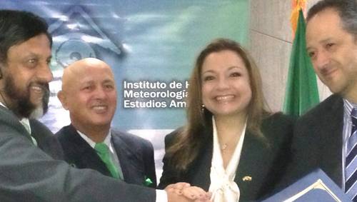 Los representantes de la firma de dicho convenio fueron el premio Nobel de Paz de India en 2007, Rajendra K. Pachauri, director General del Instituto de Energía y Recursos de la India (TERI), y Omar Franco Torres, director General del IDEAM; y tuvo como garante a la ministra de Ambiente y Desarrollo Sostenible, Luz Helena Sarmiento.